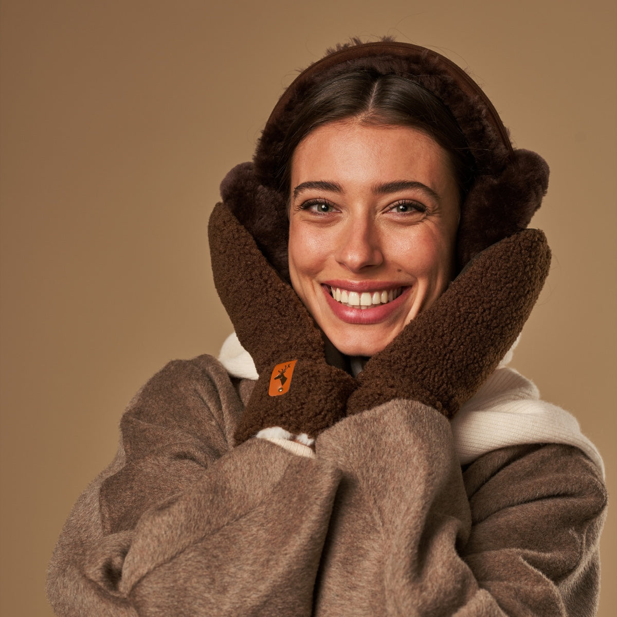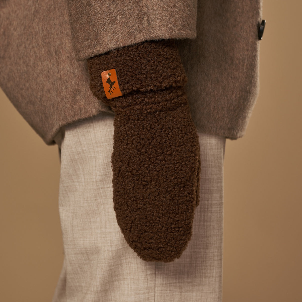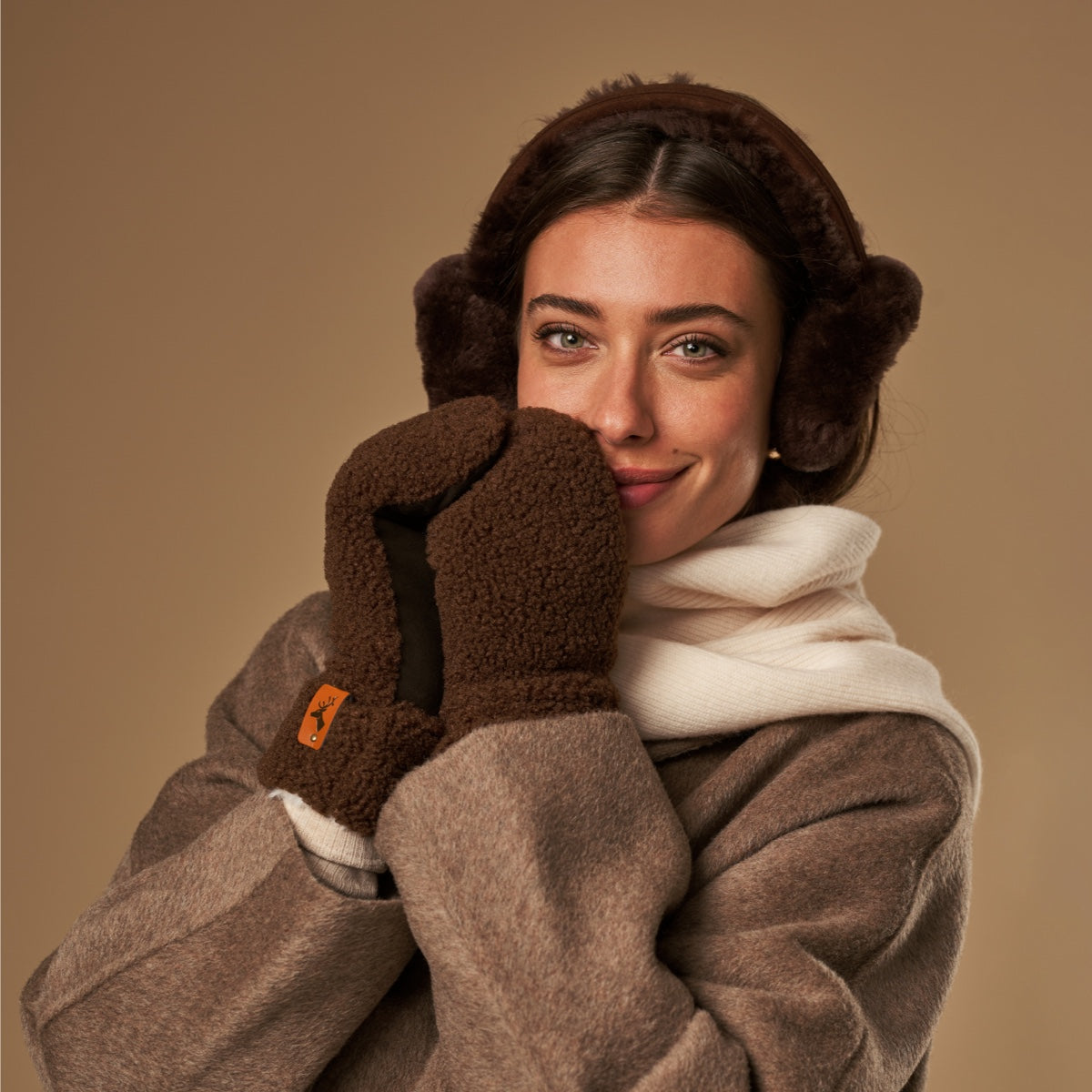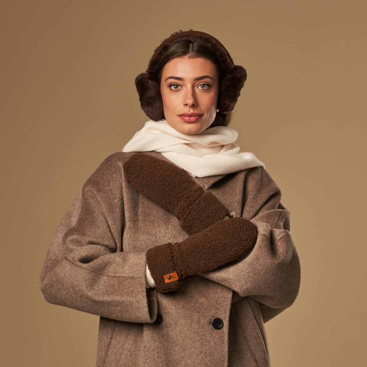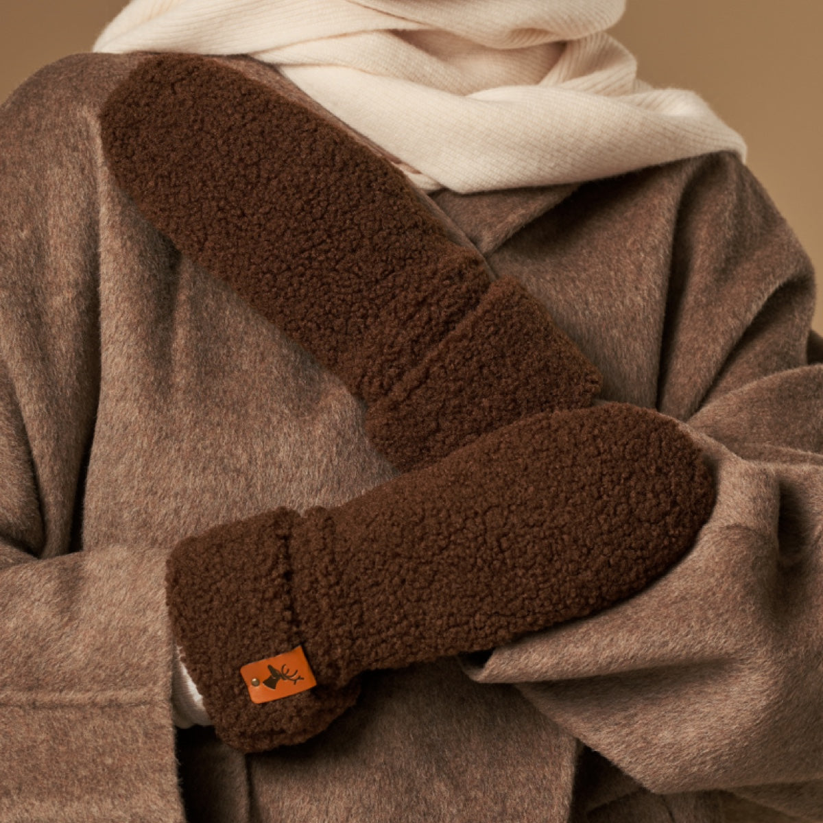 Sophia (marron) - Moufles ultra-douces en peluche avec doublure chaude en fausse fourrure