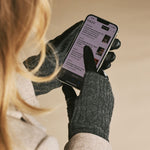 Riley (noir) - Gants tactiles en cuir de mouton avec manchette en tricot