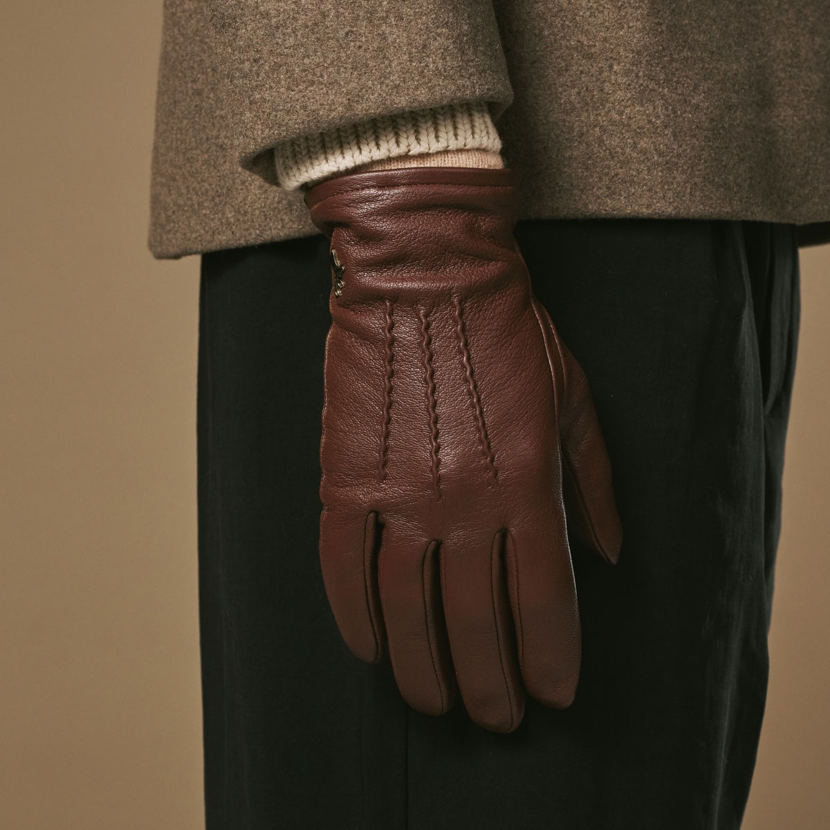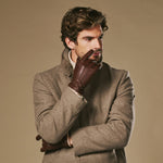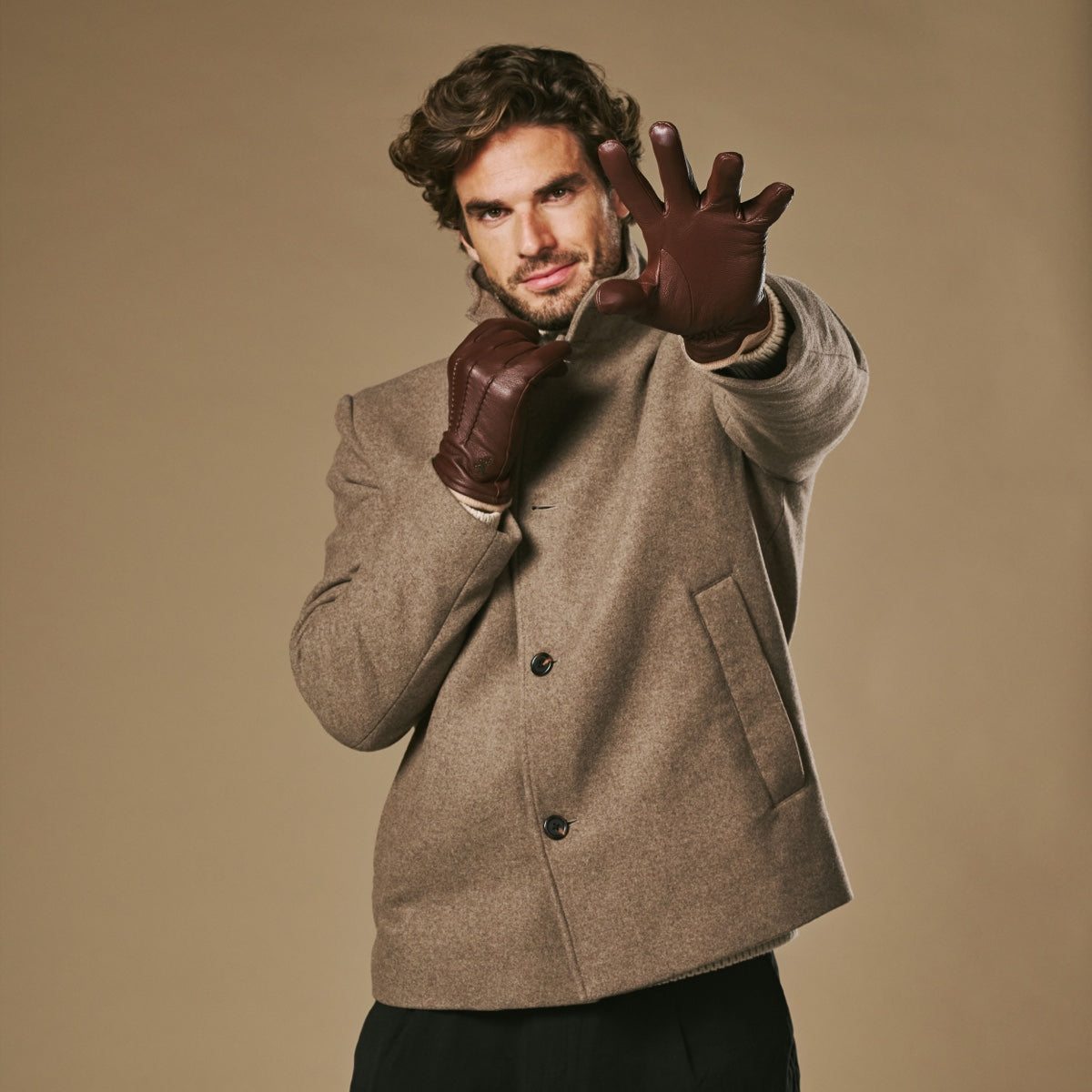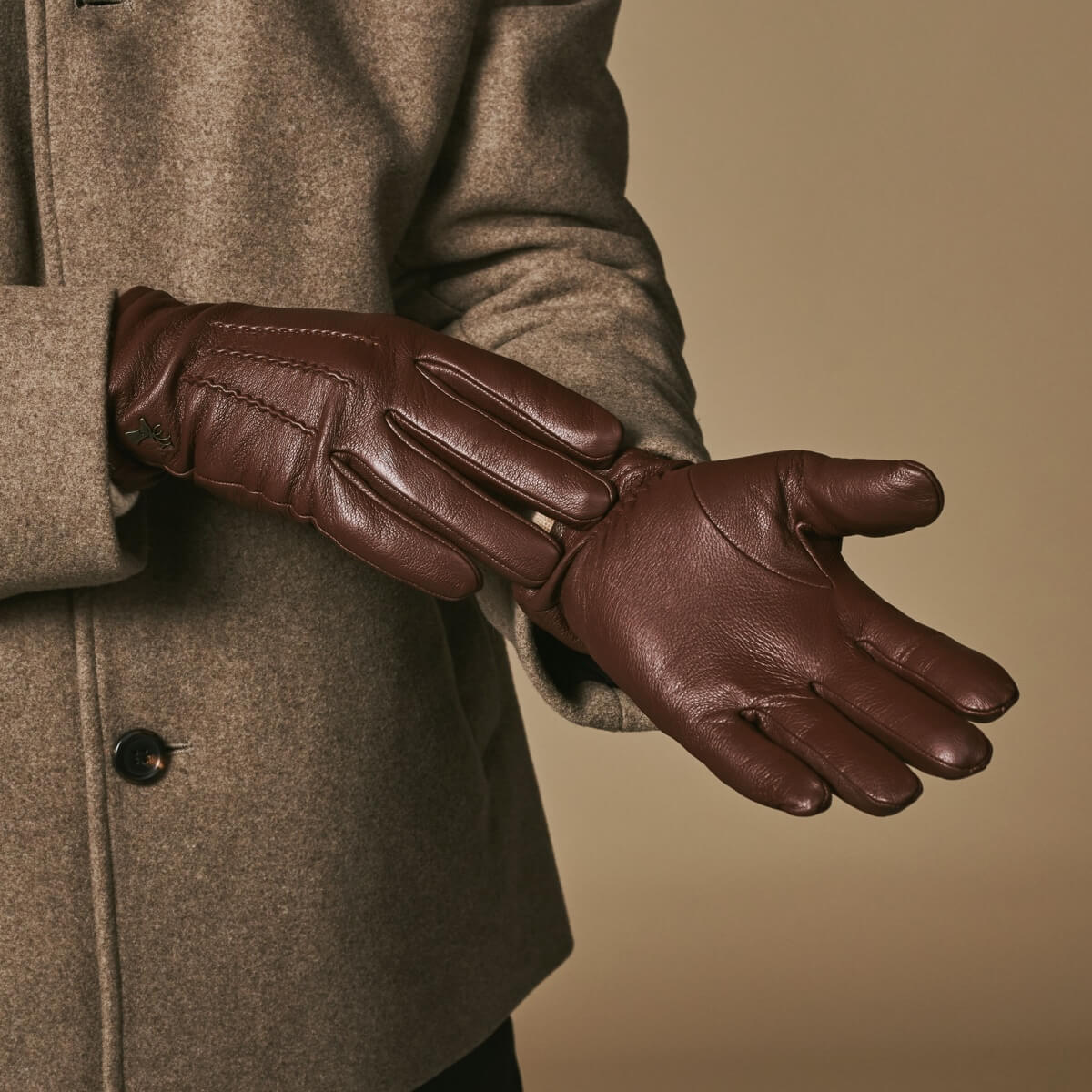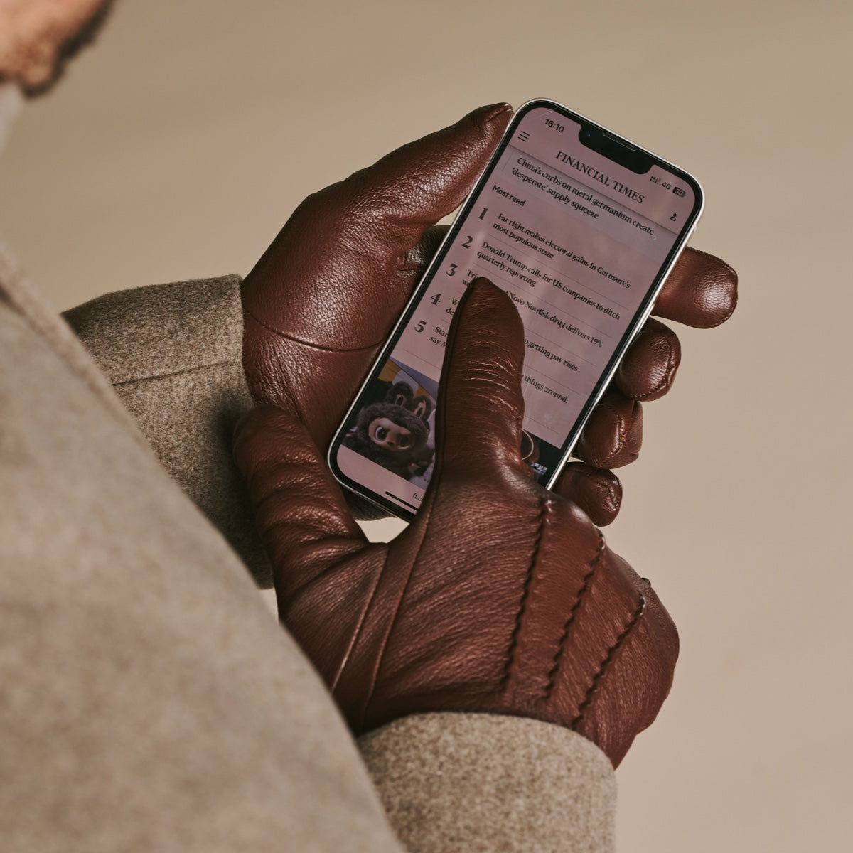 Harvey (marron) - Gants en peau de chèvre avec luxueuse doublure en laine & fonction écran tactile