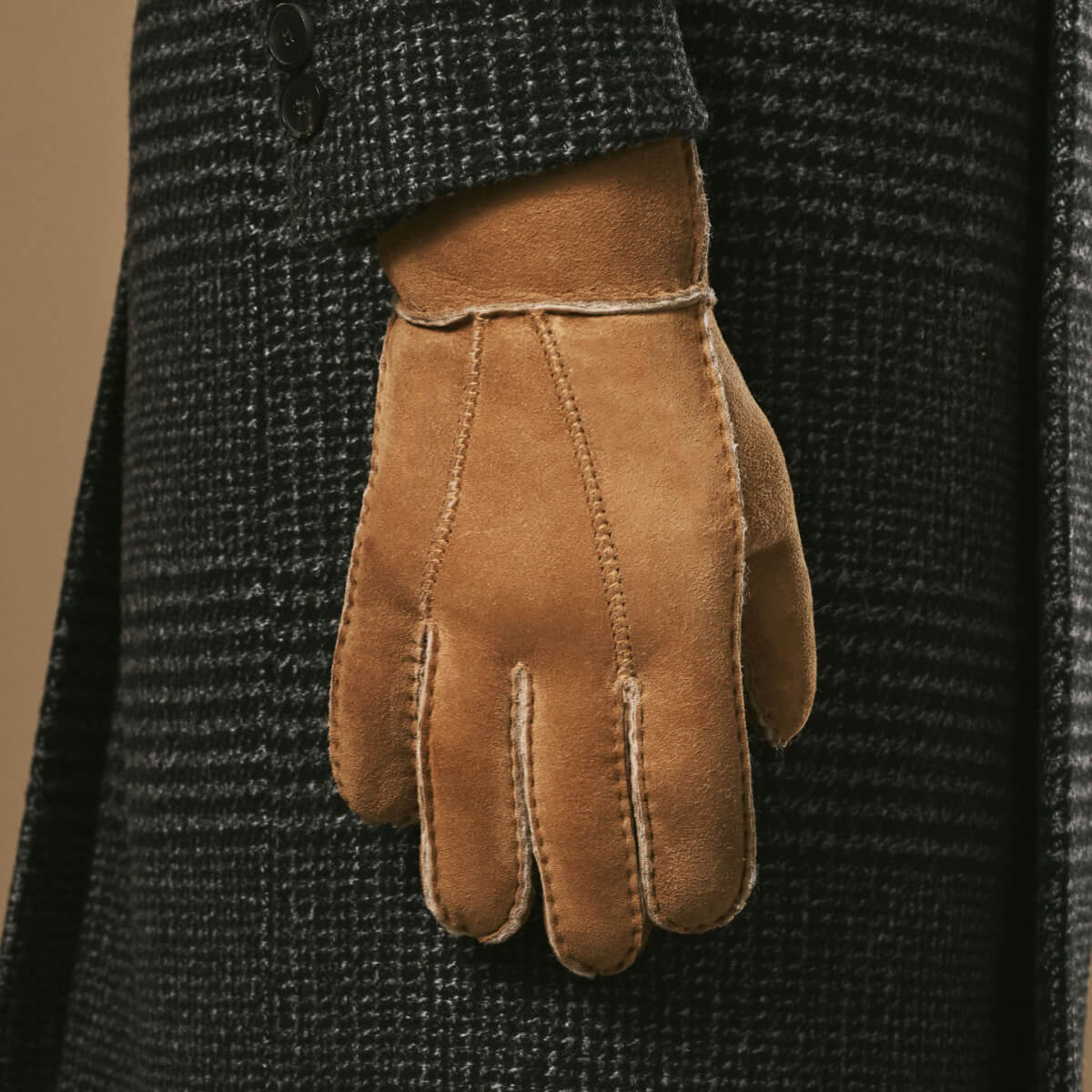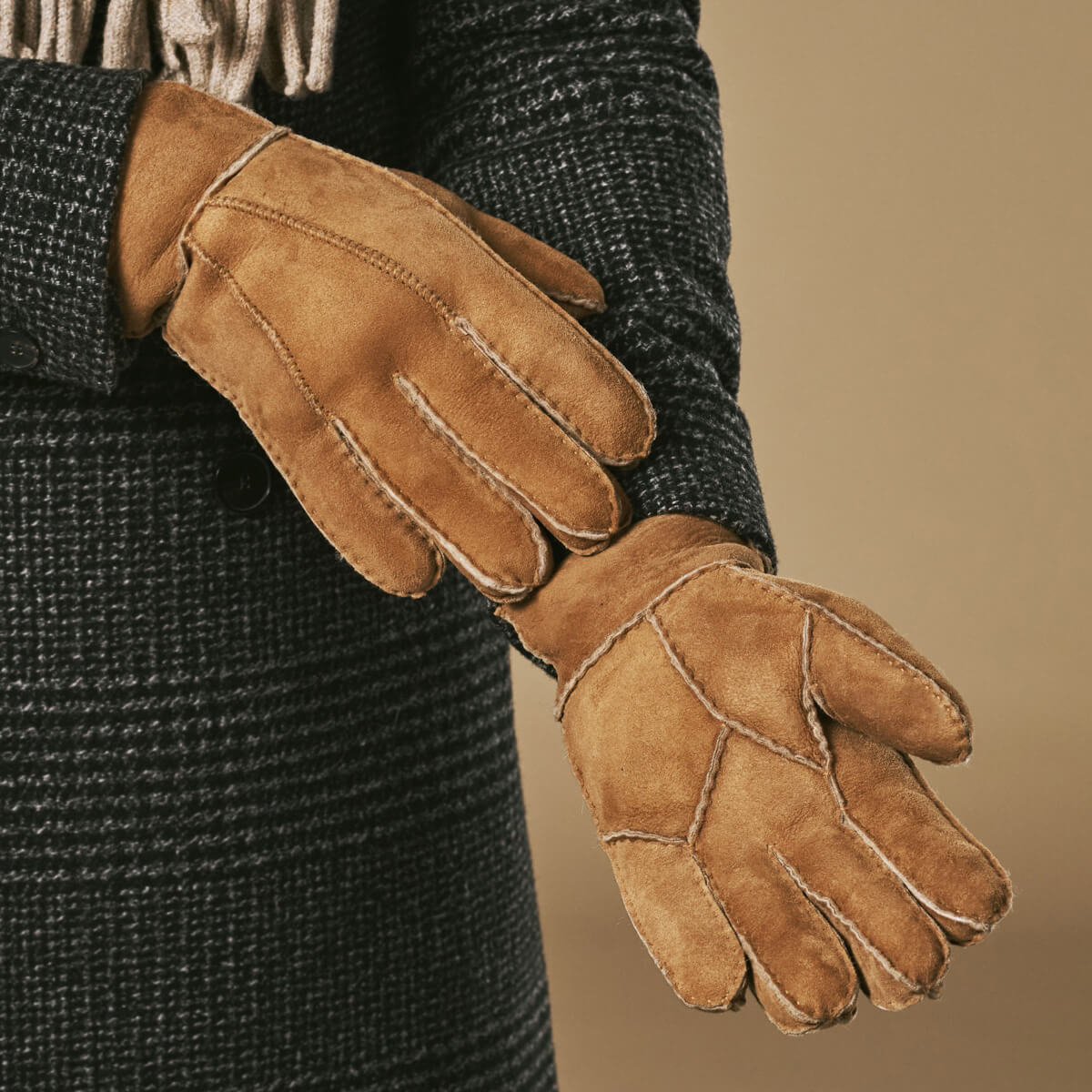 Taylor (camel) - Gants patchwork en peau de mouton pour hommes avec doublure chaude en fourrure de mouton