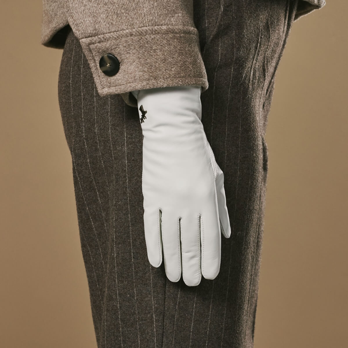 Ivy (blanc) – Gants en cuir de mouton doublés de laine/cachemire et fonction tactile