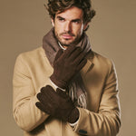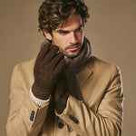 Taylor (marron) - Gants patchwork en peau de mouton pour hommes avec doublure chaude en fourrure de mouton