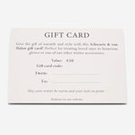 Vous cherchez une idée de cadeau attentionnée pour les fêtes ? La carte cadeau Schwartz & von Halen offre à vos proches la liberté de choisir leur propre paire de gants en cuir luxueux – ou l’un de nos autres accessoires d’hiver élégants. Un cadeau parfait pour la Saint-Nicolas ou à glisser sous le sapin de Noël.