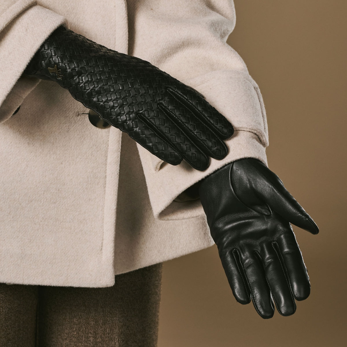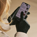 Josephine (noir) – Gants à motif tressé doublés de laine et fonction tactile