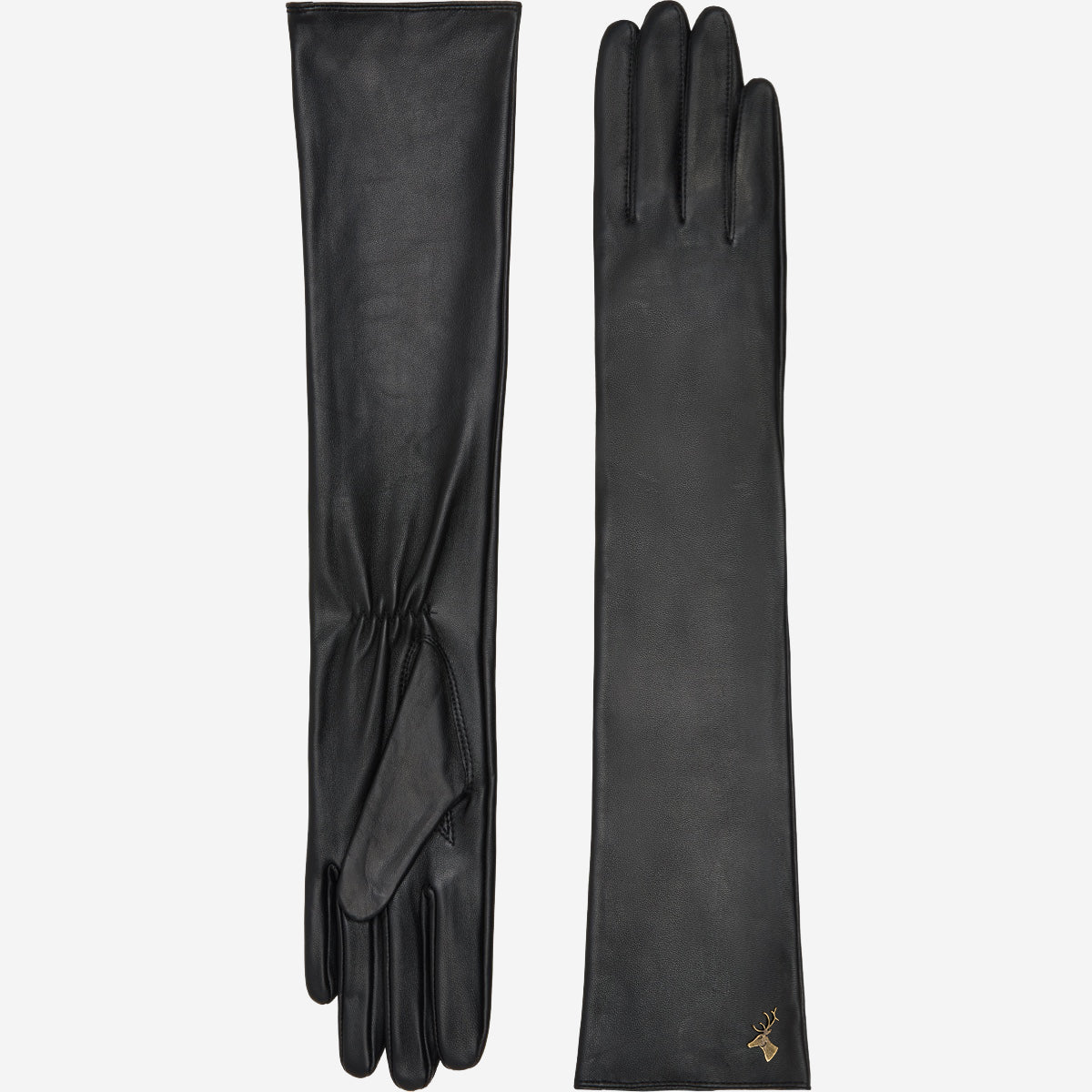 Rosemary (noir) - Gants extra longs en cuir d'agneau doublés de soie et fonction tactile