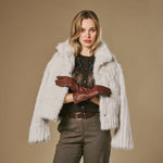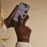 Emma (marron) - Gants extra-longs en cuir de mouton avec doublure luxueuse en cachemire et fonction tactile