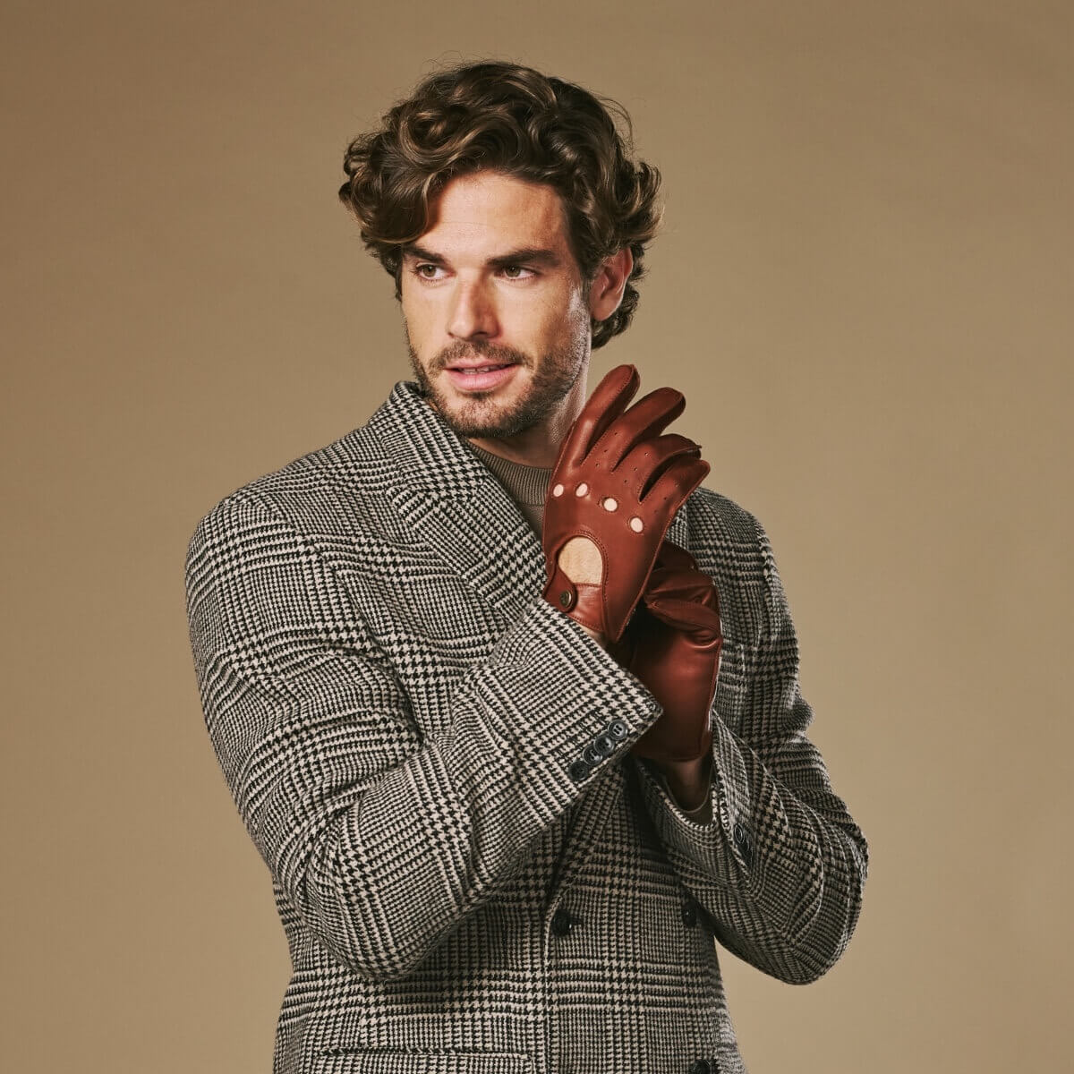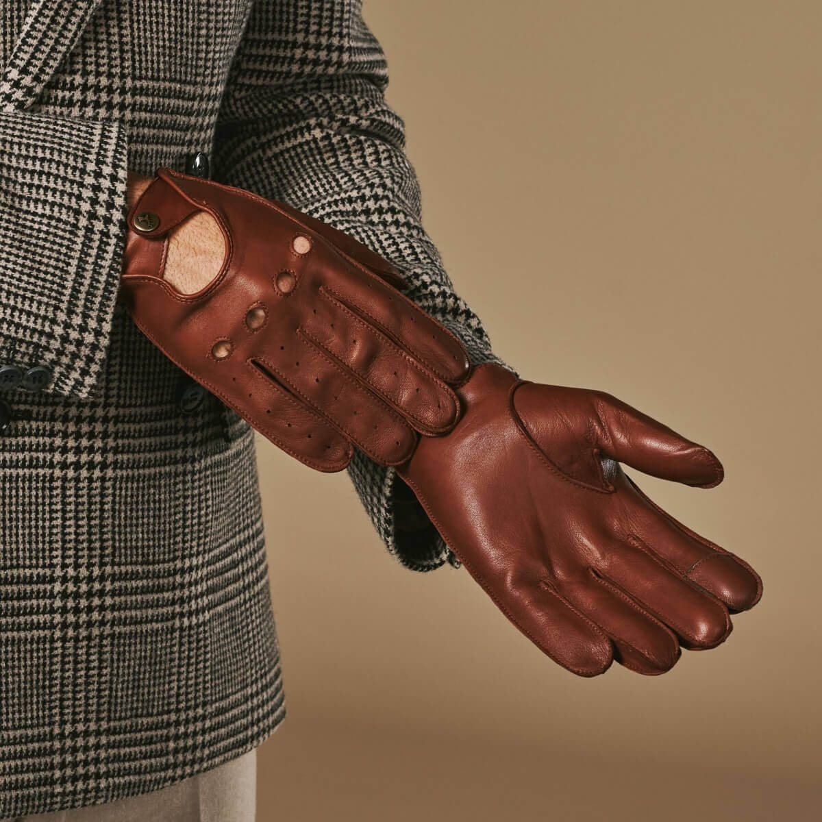 Gosling (cognac) - Gants tactiles de conduite classiques en cuir d'agneau