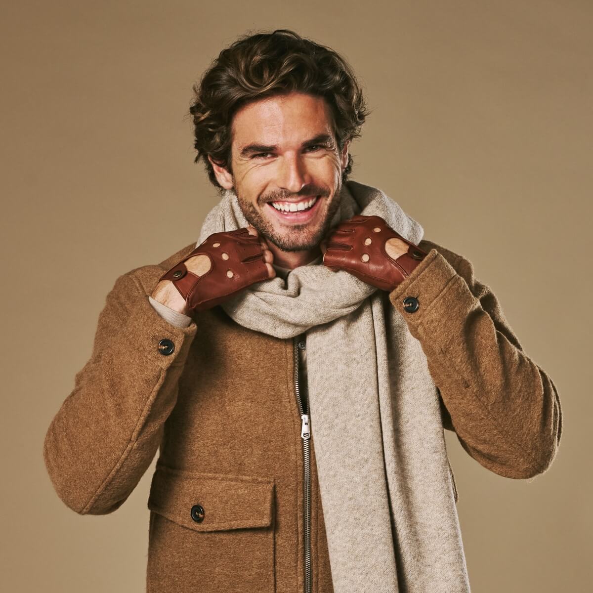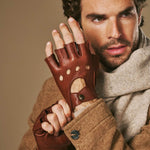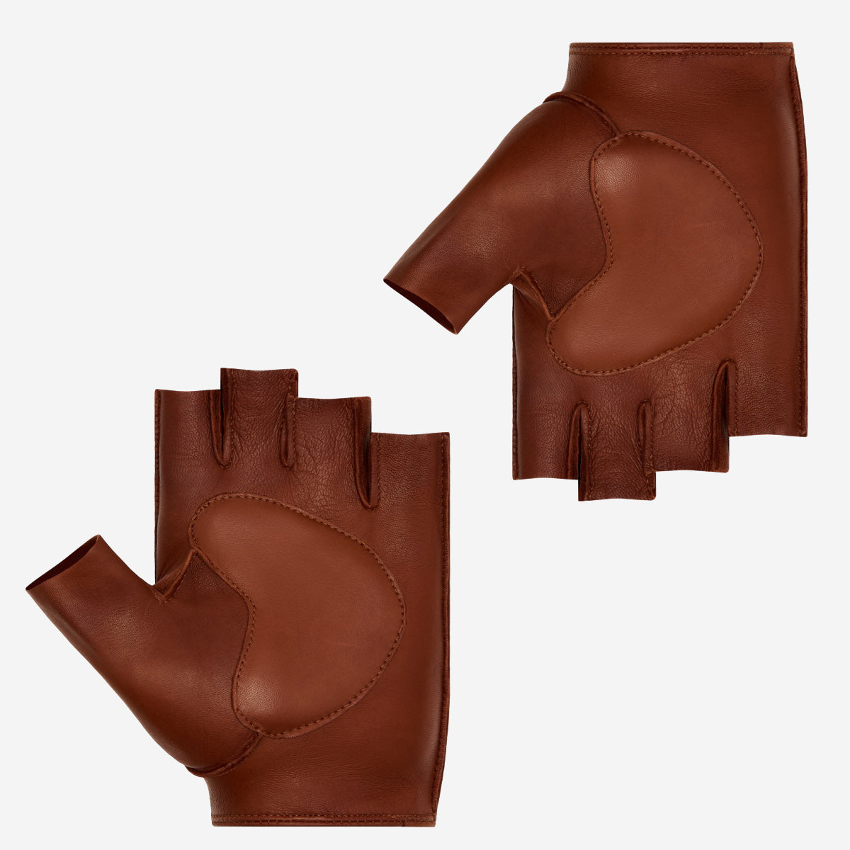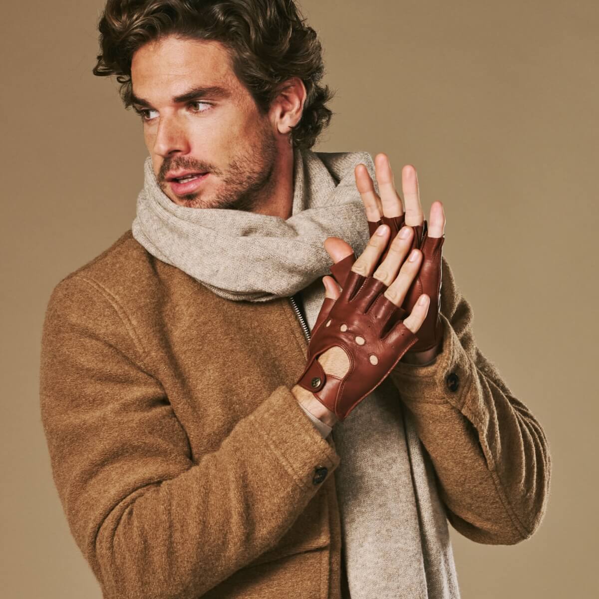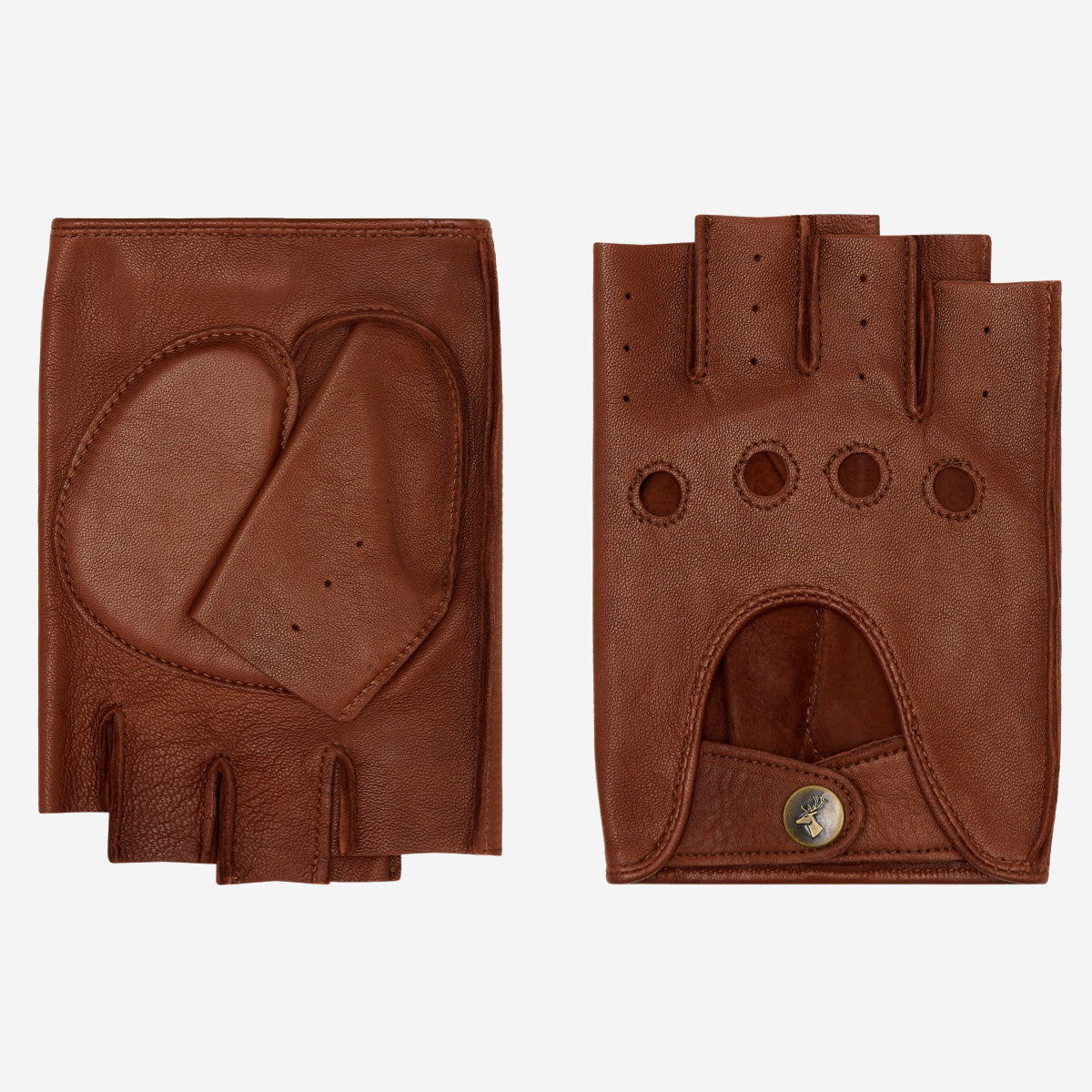 Liam (cognac) – Gants de conduite classiques sans doigts en agneau pour homme