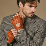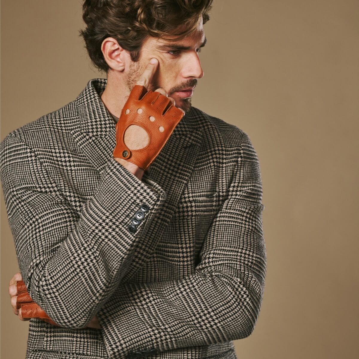 Zane (cognac) – luxueux gants de conduite sans doigts en cuir de cerf américain