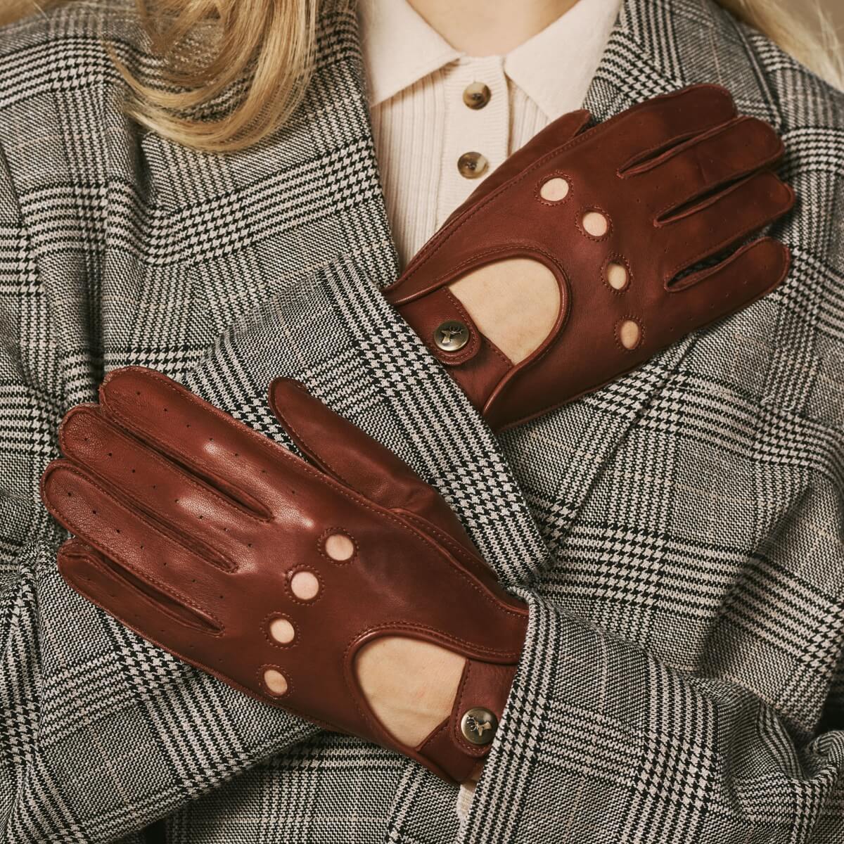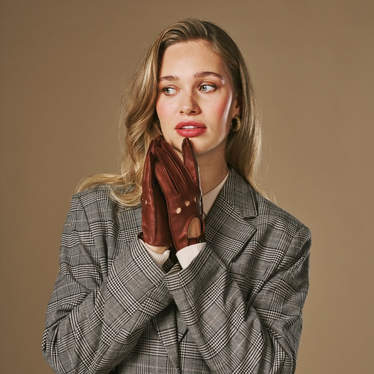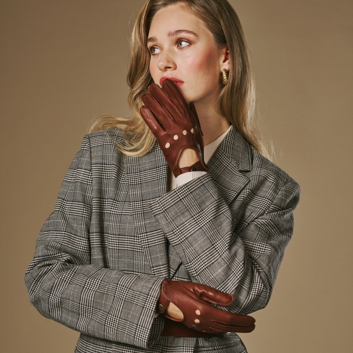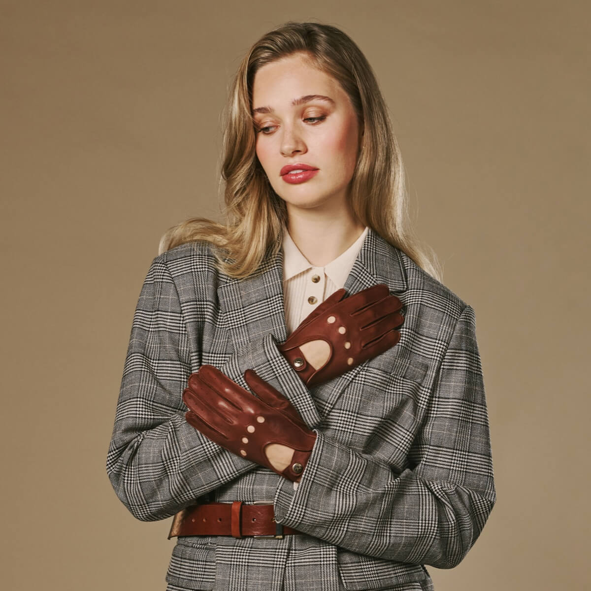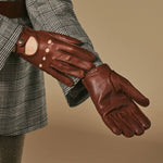 Alexis (cognac) - Gants tactiles de conduite classiques en cuir d'agneau