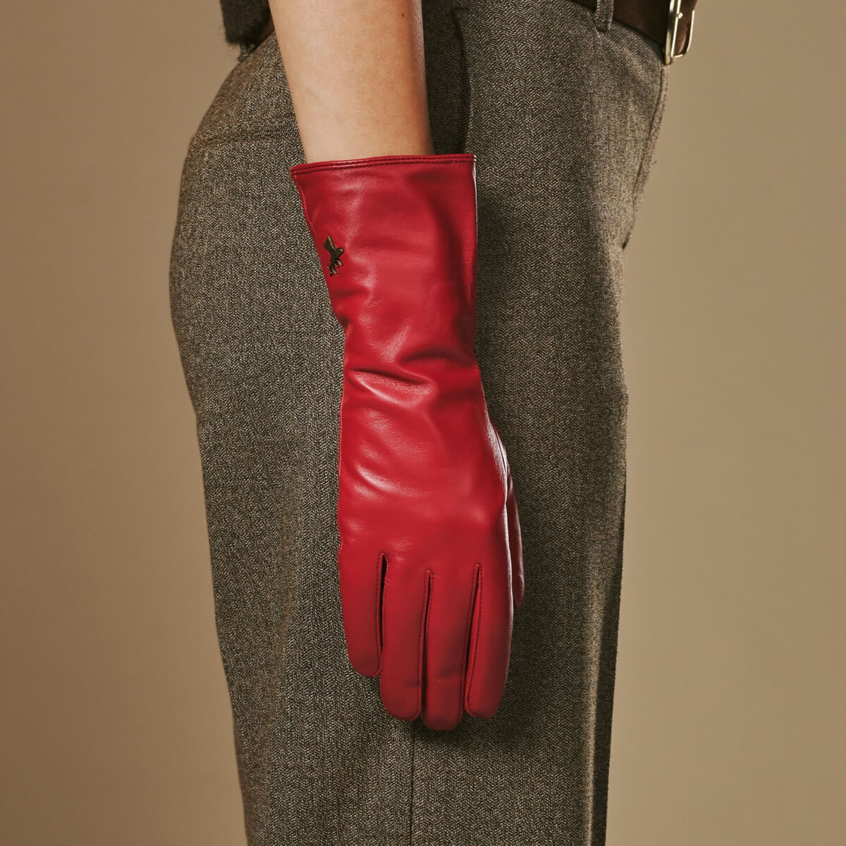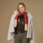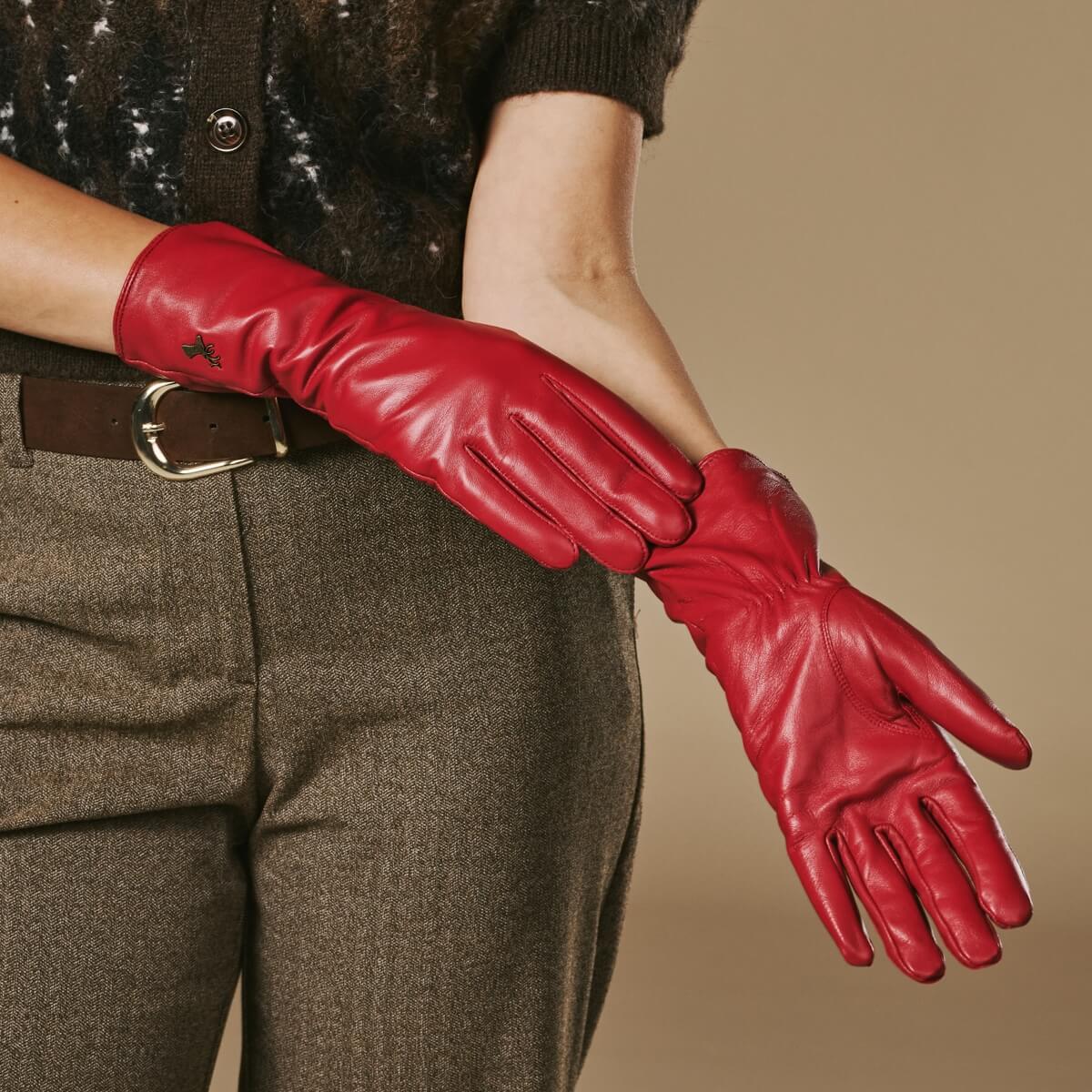 Emma (rouge) - Gants extra-longs en cuir de mouton avec doublure luxueuse en cachemire et fonction tactile