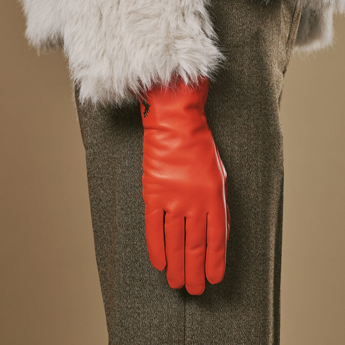 Ivy (orange) – Gants en cuir de mouton doublés de laine/cachemire et fonction tactile