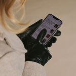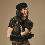 Rosemary (noir) - Gants extra longs en cuir d'agneau doublés de soie et fonction tactile