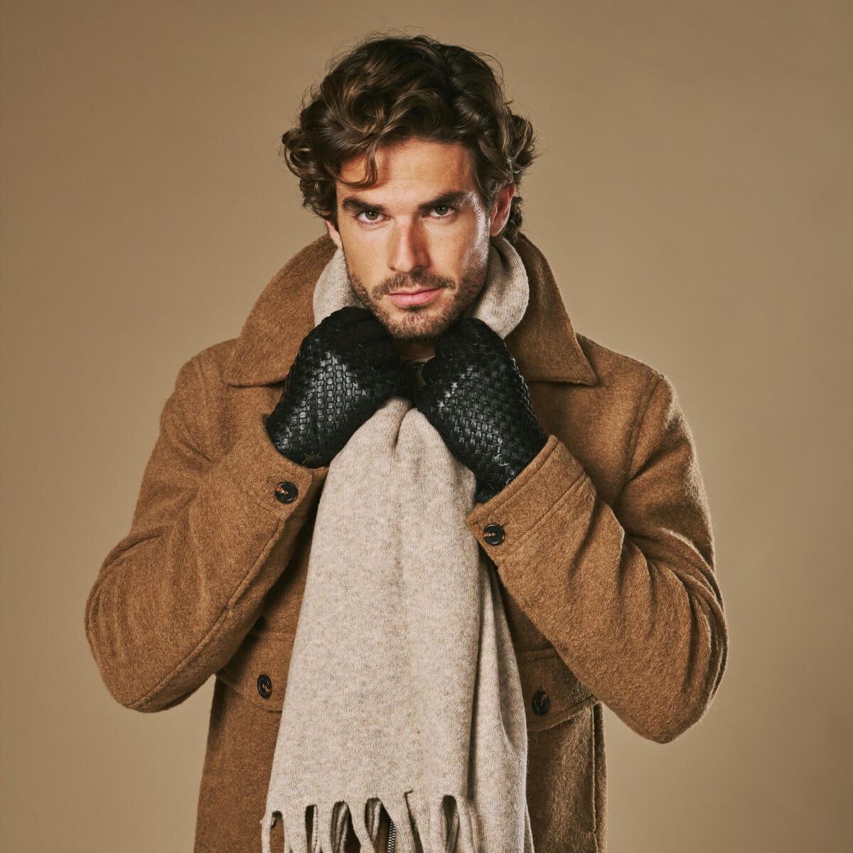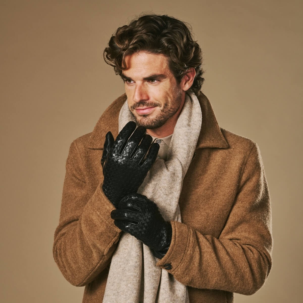 Frederick (noir) - Gants à motif tressé doublés de laine et fonction tactile