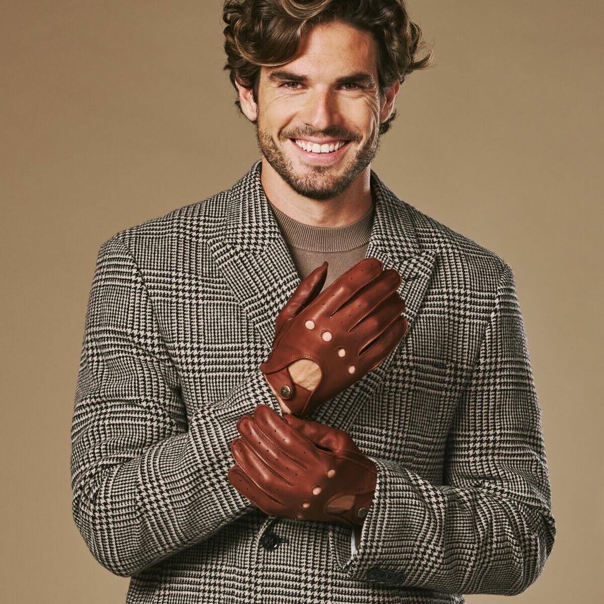 Gosling (cognac) - Gants tactiles de conduite classiques en cuir d'agneau