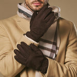 Winston (marron foncé) - Gants pour hommes en nubuck doublés de Primaloft épaisse et fermeture à boutons-pression