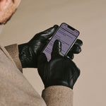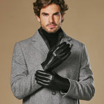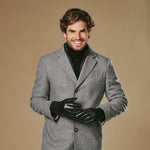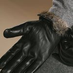 Alexander (noir) - Gants pour hommes en cuir d'agneau doublés de fourrure de lapin luxueuse et fonction tactile