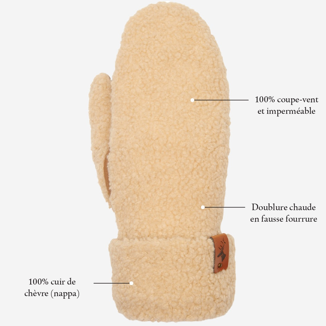 La manchette souple au niveau du poignet singularise ces moufles. Garante d’un ajustement parfait, elle veille à ce que le vent froid ne puisse jamais se faufiler. Les moufles Sophia sont fabriquées dans des matières épaisses et chaudes, elles sont donc 100 % coupe-vent et imperméables.